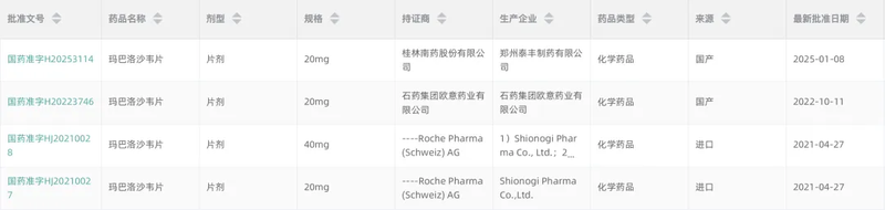 瑪巴洛沙韋在國內其化合物專利(ZL201180056716.8( CN103228653B)/被取代的多環性氨基甲酰基吡啶酮衍生物的前藥)到期時間為2031年9月21日。 作用機制及臨床應用 瑪巴洛沙韋是一種前藥,口服后可在腸上皮細胞、血液和肝臟中經芳基乙酰胺脫乙酰酶水解為具有抗流感病毒活性的巴洛沙韋,巴洛沙韋再通過與 Cap-依賴性核酸內切酶結合來抑制病毒增殖,阻礙流感病毒在人體內復制和傳播,發揮抗病毒作用。 瑪巴洛沙韋不同于靶向神經氨酸酶的抗流感藥,是一種創新的帽狀結構依賴性核酸內切酶抑制劑,是目前獲批治療流感的首個、也是唯一一個單劑量口服抗甲型與乙型流感藥物,其單次口服用藥即可縮短傳染期并大幅減少流感癥狀持續時間,為患者帶來了更便捷的治療方案。 上市情況 2018年2月,由日本鹽野義制藥(Shionogi)研發并與瑞士羅氏共同研究的新型抗流感藥物瑪巴洛沙韋(商品名:Xofluza?)在日本獲得了加速批準并獲批上市。目前瑪巴洛沙韋已在全球70多個國家上市,用于治療甲型和乙型流感病毒感染。 國內上市情況 2021年4月,瑪巴洛沙韋片在中國獲批上市,用于治療12周歲及以上急性無并發癥的流感患者。2023年3月,瑪巴洛沙韋(速福達?)獲國家藥監局批準新適應癥,用于治療既往健康的成人和5歲及以上兒童單純性甲型和乙型流感患者,或存在流感相關并發癥高風險的成人和12歲及以上兒童流感患者。2021年12月談判成功首次進入新版醫保目錄,為醫保乙類藥物。 2022年10月,石藥集團歐意藥業的瑪巴洛沙韋片獲批上市,視同過評,為國內首仿。今年,桂林南藥股份有限公司申報的瑪巴洛沙韋片獲批,為國產第2家,形成“1原研+2國產”格局。